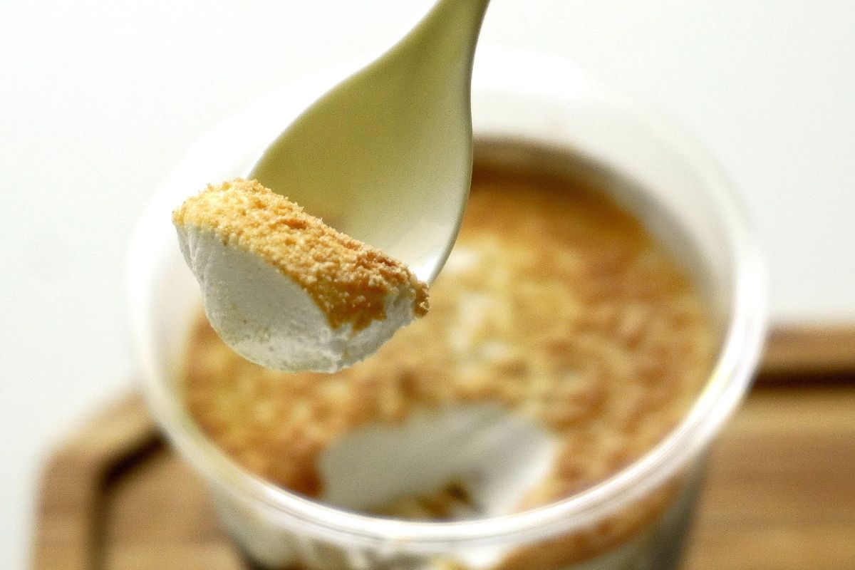 まずはスプーンで上の方をちょっとすくって、きなことふわっとなめらかなホイップクリームの組み合わせを味わいます。