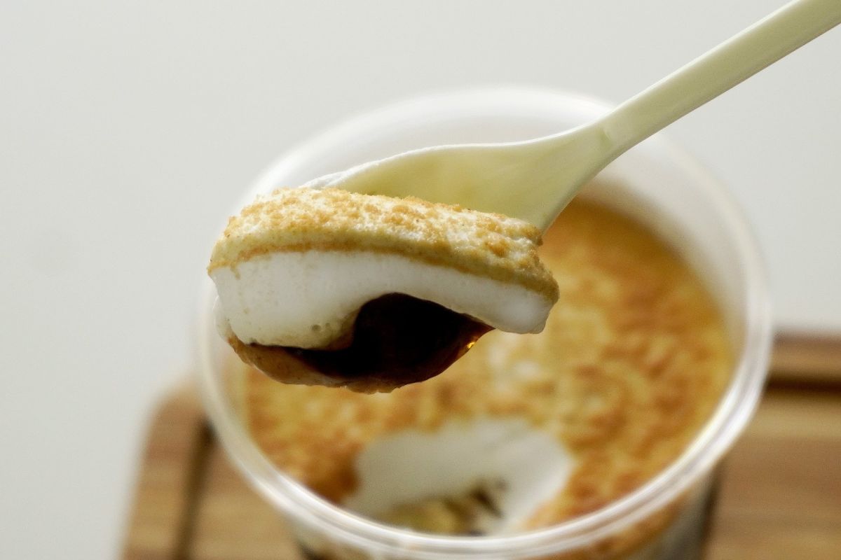 パッと見はスリムに見える「和パフェ黒蜜きなこ」のカップですが、ホイップクリームや濃厚なきなこのムースで、見た目以上に食べごたえたっぷり。小腹がすいたときのおやつに、仕事や勉強で疲れたときのブレークタイムに、ぜひ味わってみてはいかがでしょう。