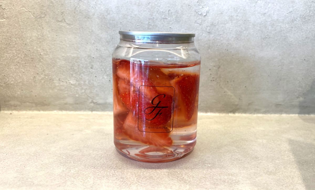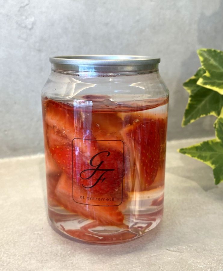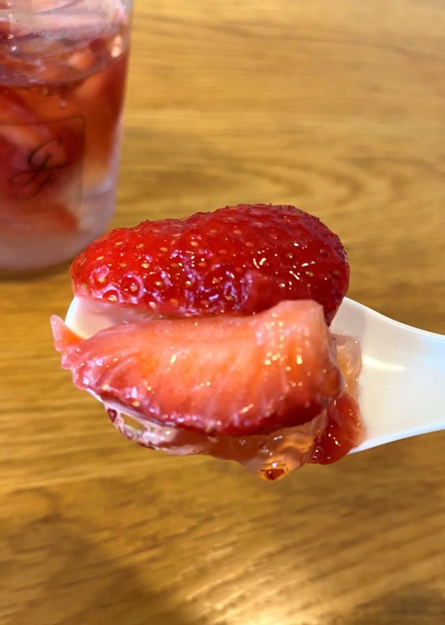 甘みと酸味のバランスがよく、味が濃いあまおうをふんだんに使用。白砂糖は使っていないというゼリーの甘さは控えめで、あまおうの味わいを引き立てます。「Gelee de fruits」ではその日仕入れたフルーツをパティシエが必ず味見し、コンディションに合わせてゼリーの甘さや固さを調整しているそう。そこまでこだわられていることに驚きます。