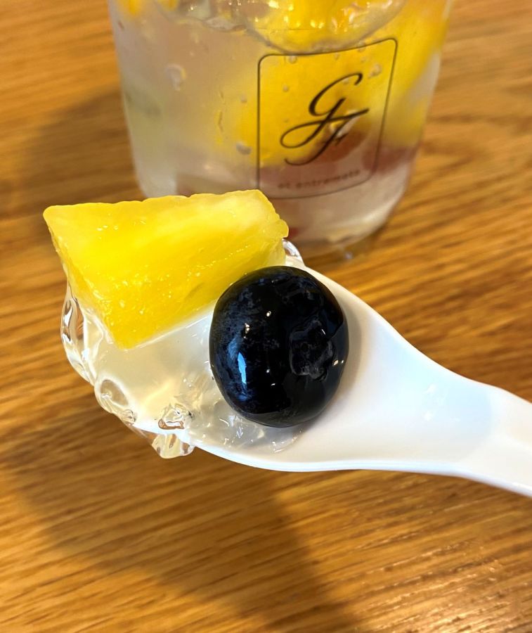 そしてもうひとつ注目したいのが、ゼリーの美しさ。詳しい製法は企業秘密とのことですが、パティシエがひとつずつ手作業で、具材が底にしずまず、バランスよく散らばって固まるように作っているとのこと。目にも鮮やかなゼリーは、映えもばっちり♪