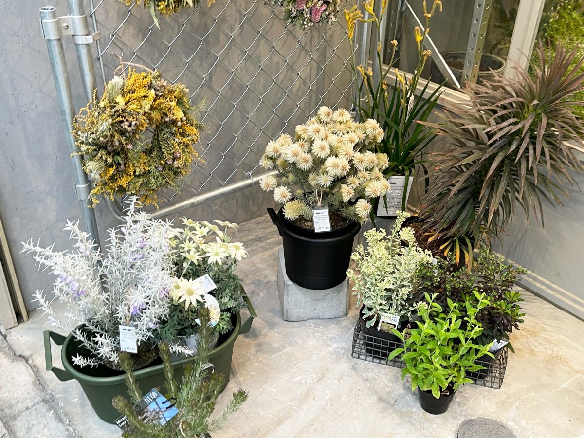スタイリッシュな店構えですが、なんだか賑やかな雰囲気! 生花だけでなく、観葉植物やドライフラワーなど、幅広く扱っています。