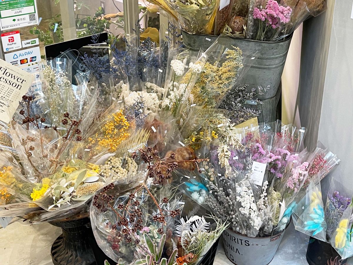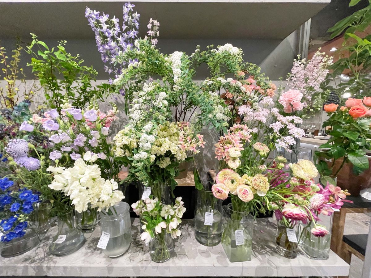 その場でお花を選び、ブーケを作ってもらうことももちろんできますよ♪ 作り置きで2500円のブーケもあるので、気に入ればそのまま購入もできちゃいます。
