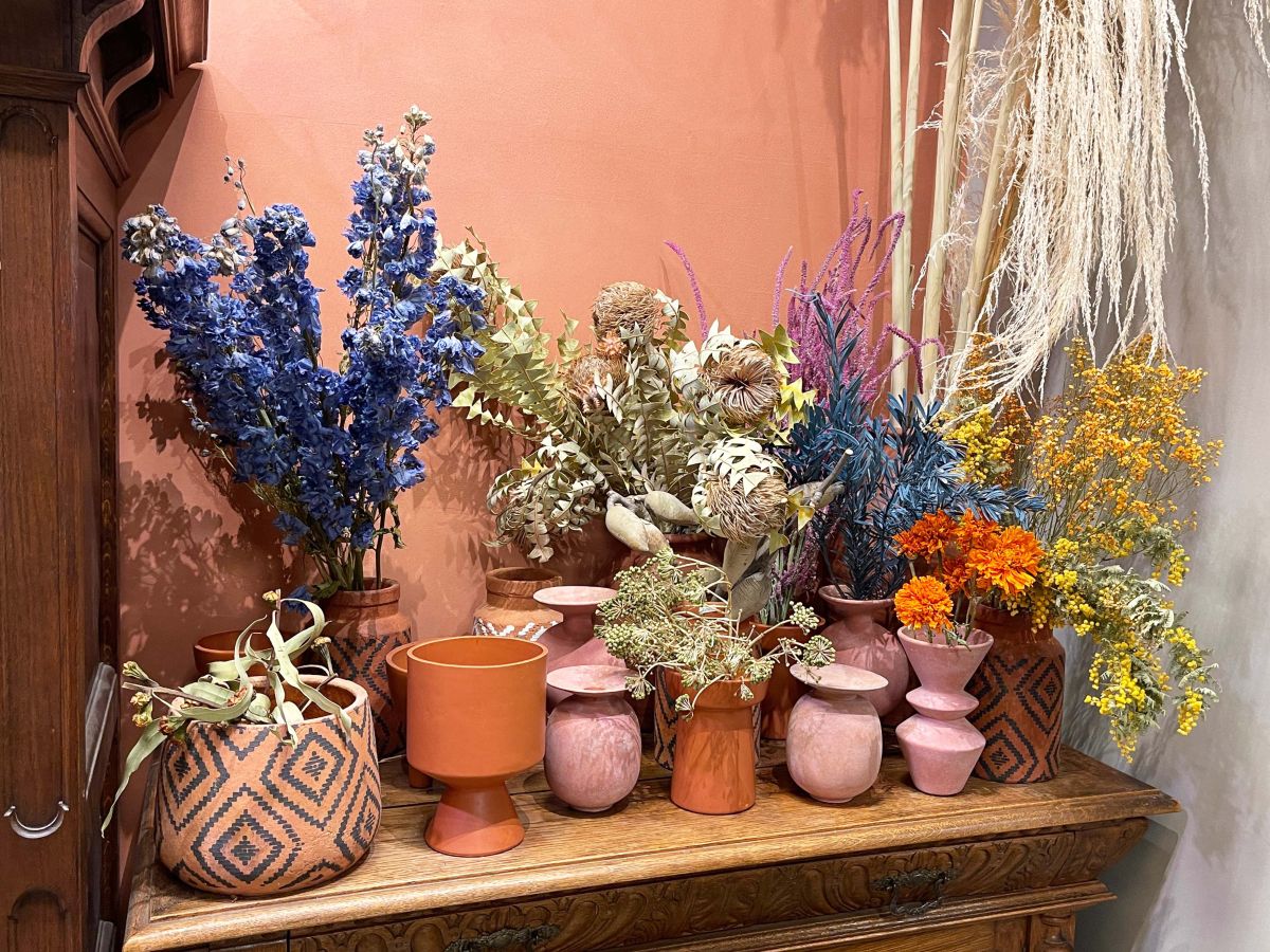 また、小さなスペースで枝ものを飾れるような、安定感があってコンパクトな花瓶も扱っています。