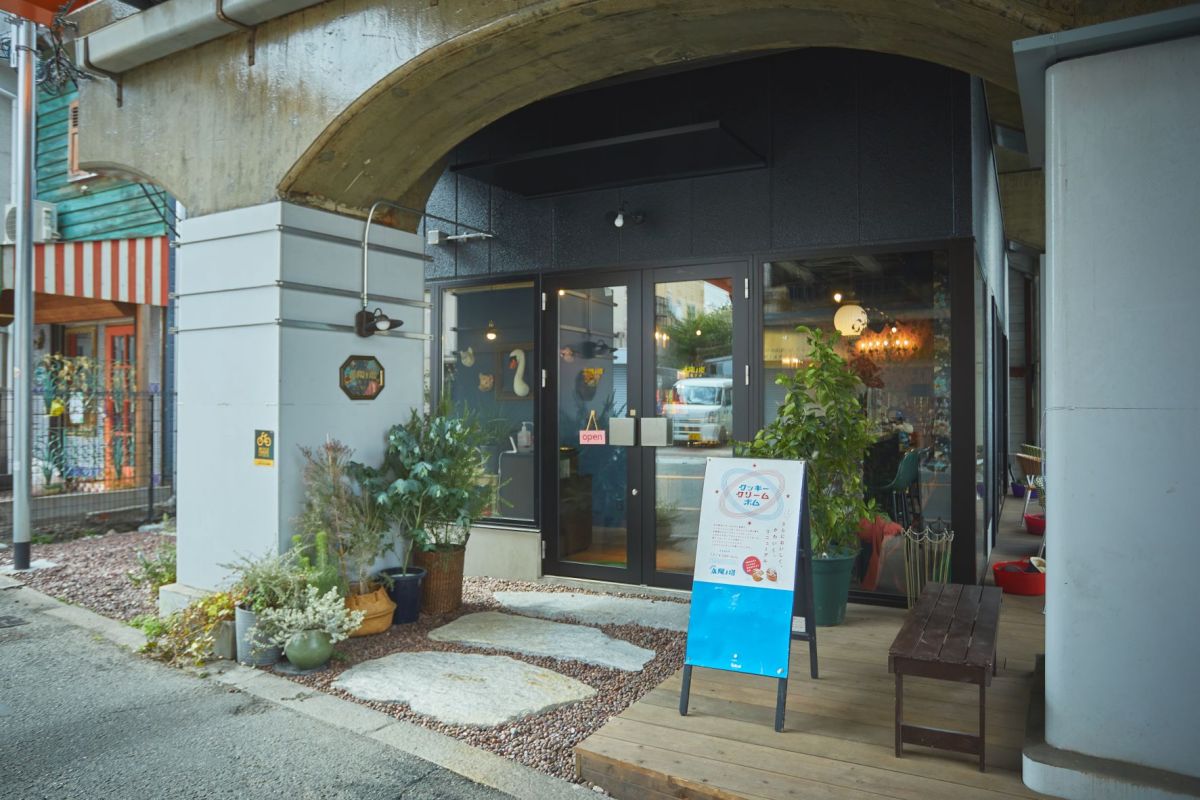 大阪メトロ中崎町駅から徒歩3分、どこか懐さが漂う街の高架下に「太陽ノ塔 洋菓子店」はあります。元は本店と4つの支店の商品を作るセントラルキッチン&ショップだった場所を、”ワクワクが見つかる空間”をコンセプトにリニューアル。新たにカフェを併設しました。
