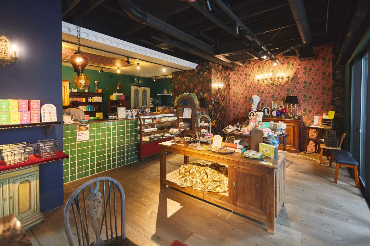 店内に入ると、まるで外国の絵本の世界に迷い込んだかのような独特の世界が広がります。海外にあるレトロなお店を参考に、かわいい壁紙や緑のタイルのカウンターなど、内装はスタッフで話し合って選び、自分たちで手作りした箇所も多いそう。