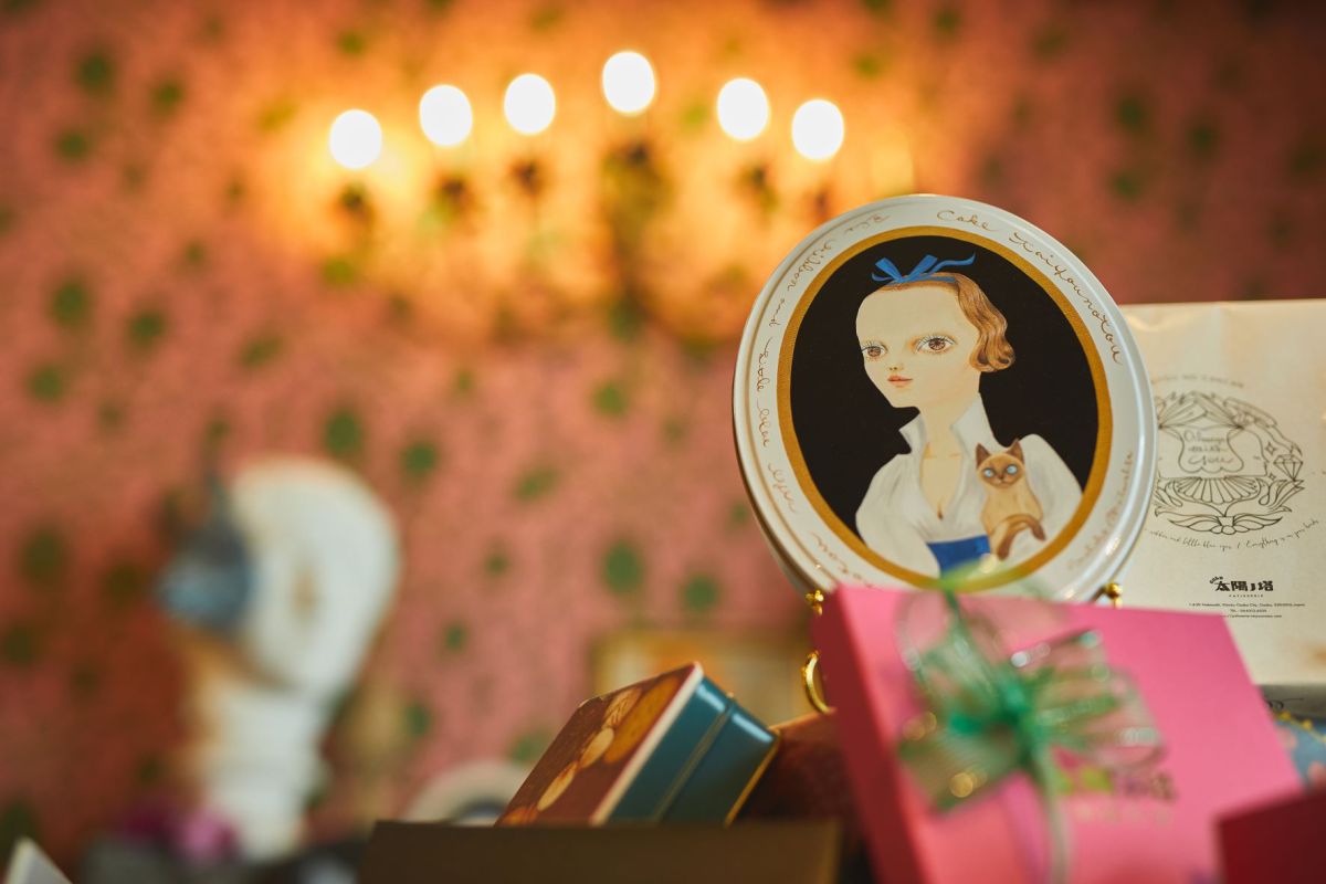 イラストレーターの松下さちこさんによるデザインのクッキー缶「タイヨウノカンカン shiro」も人気です。楕円形の缶に、猫を抱いた独特の雰囲気をもつ少女が描かれ、まるで絵画のよう。小物入れはもちろん、インテリアとしてお部屋に飾ってもよさそうです。