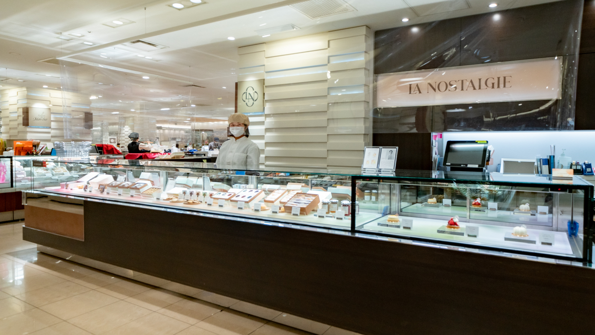 新宿三丁目駅と直結している「伊勢丹新宿店」。昭和8年(1933)にアールデコスタイルのモダンなデパートとして誕生して以来、1世紀近くも幅広い世代から愛され続け、現在も国内トップの集客力と売上を誇っています。地下1階にあるカフェ エ シュクレ(洋菓子)売場は、国内外を問わず著名な店ばかり。2022年3月、そこに仲間入りしたのが「LA NOSTALGIE」です。
