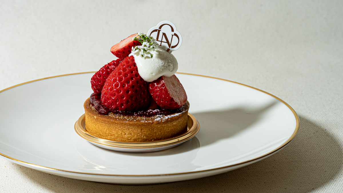 こちらは季節限定かつ不定期販売という「あまりんのタルト」972円。埼玉県の和銅農園で大切に育てられた新品種のイチゴ・あまりんの力強い甘みを生かすため、マスカルポーネ入りのシャンティ、クリームディプロマットなどを組み合わせたタルトです。
