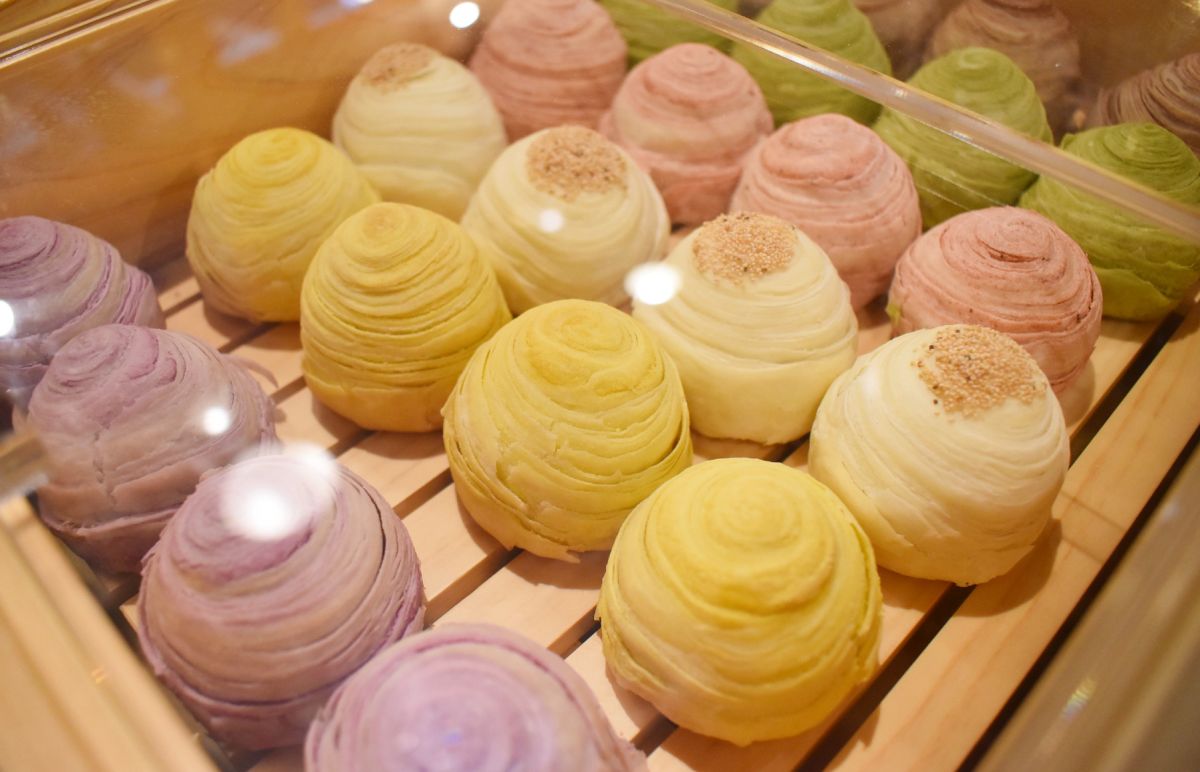 お店のカウンターにずらりと並ぶのは、台湾の茶芸館で見かけるような、伝統的なお茶菓子たち。色とりどりのこちらは「酥(スー)」という台湾のパイです。紫芋や、かぼちゃ、栗きんとん、苺牛乳、抹茶、チョコレートバナナなど、日替わり&季節限定のフレーバー各330円~が豊富に揃っていて、どれにしようか迷ってしまいます。