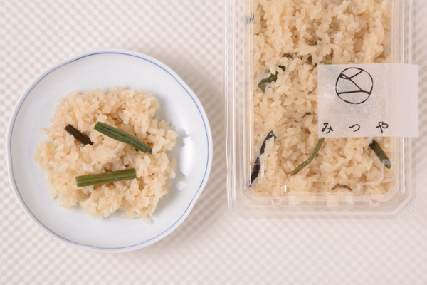 ランチにもおすすめの山菜がたっぷり入った山菜おこわは、蒸し上げたもち米に、山菜と特製の和風だしを混ぜ合わせてさらに蒸し上げているので、ふっくらもちもち! 山菜のシャキシャキとした食感がアクセントとなり食欲がそそられます。みたらし団子、おこわは常温で当日中にどうぞ。