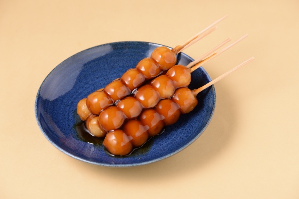 わらび餅以外にも、みたらし団子500円と山菜おこわ400円があります。おいしそうな見た目に惹かれてどちらも購入しました。米粉と水のみで作られた無添加のみたらし団子は、弾力のある食感が魅力。小さめサイズなので、食べやすいのも人気の理由です。わらび粉と昆布、たまり醬油、黒糖がバランスよく配合されたとろとろの甘じょっぱいタレをたっぷりと絡めて頬張りましょう。