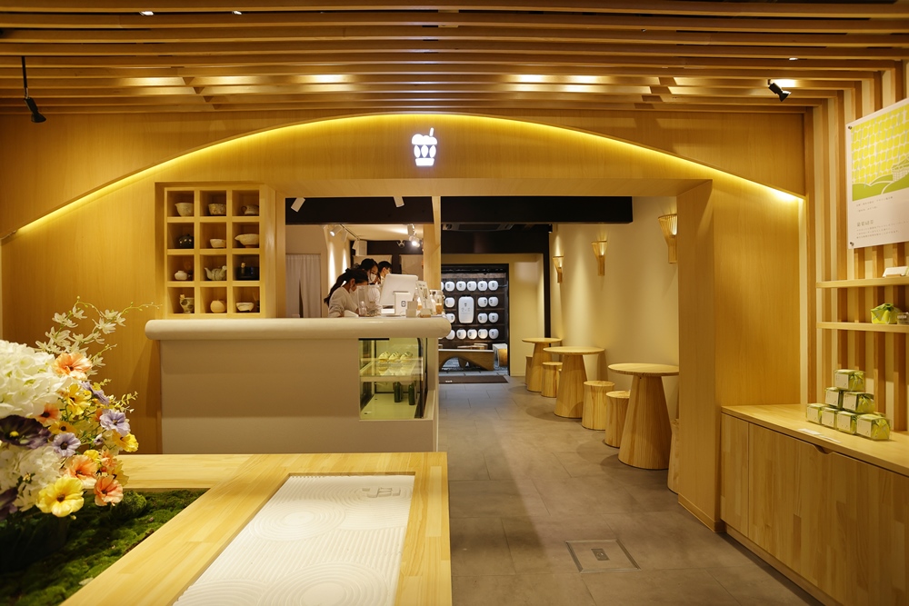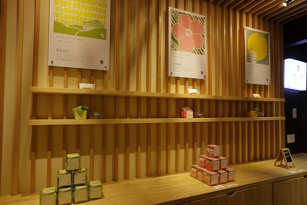 1階では、風呂敷に包まれたフレーバーティーも販売しています。マスカットと煎茶をブレンドしたフレーバーティー「葡萄緑茶」と、白桃とウーロン茶をブレンドした「白桃烏龍」は各680円。ちょっとしたお土産にもぴったりです。