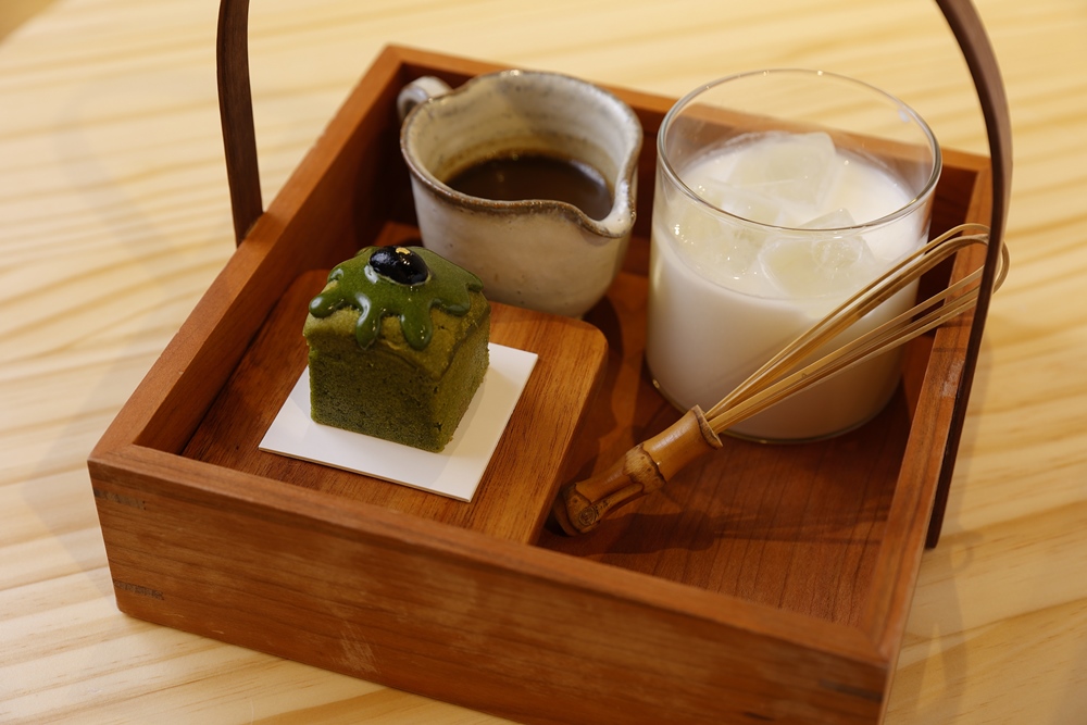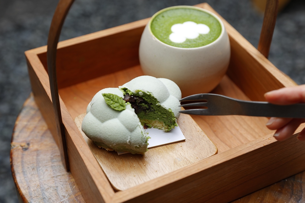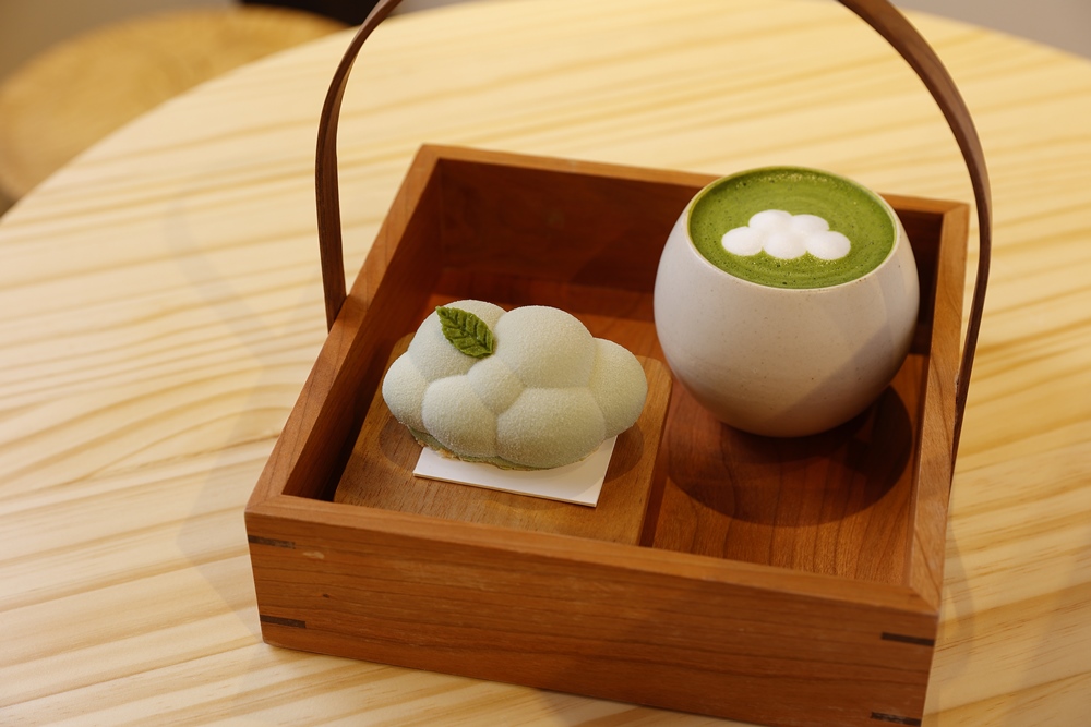 一番人気のメニューは、雲ノ茶セット1180円。雲ノムースと雲ノ抹茶ラテが、かわいい持ち手付きのお盆で提供されます。ふわふわ、もこもこ、まるで雲のようなフォルムの雲ノ茶ムースは、どの角度から見てもフォトジェニック♡