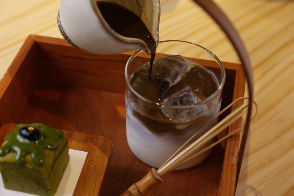 アイスの雲ノほうじ茶ラテは、自分でミルクにほうじ茶を注ぐスタイル。ミニ茶筅がついていて、お茶を点てているような気分が味わえて楽しい♪ ほうじ茶の香ばしい香りと、まろやかなミルクの味わいがたまりません。
