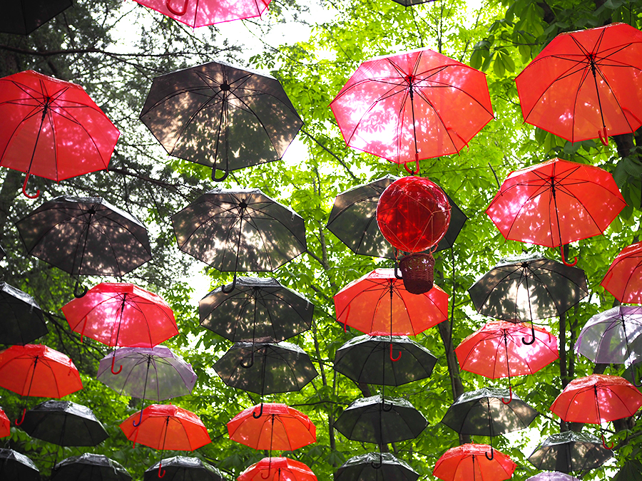 晴れた日には、傘のカラフルな影が地面にできるのだとか。晴れの日に上も下もカラフルな中を散歩するのも楽しそうですし、雨の日に自分のお気に入りの傘を持ってお散歩するのも楽しそう!