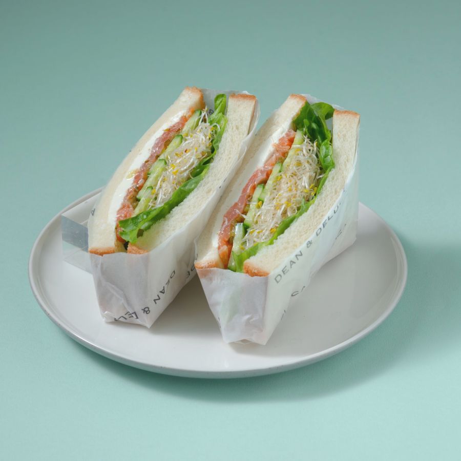 アメリカ・NY発の食のセレクトショップ「DEAN&DELUCA(ディーン&デルーカ)」では、「スモークサーモンとクリームチーズのサンドイッチ」730円(※イートインは744円)がおすすめ。しっとりとした食パンに、スモークサーモンとクリームチーズ、アルファルファを挟んだ人気メニューです。