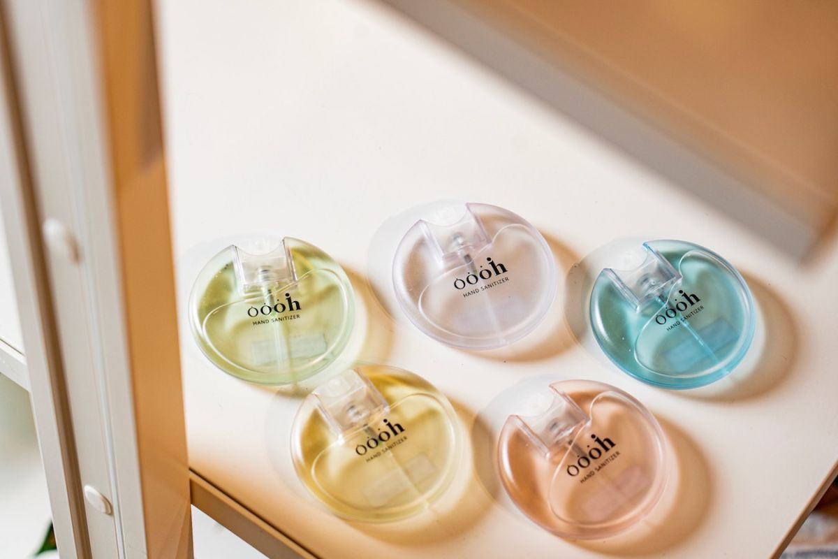 コロナ禍の外出時に重宝しそうなのが、「oooh喔喔」のアイテム。。コロンとしたかわいらしいケースに、レモンやネロリなどの香りがついた濃度75%のアルコールをイン。2cmほどの薄さなのでバッグの中でもかさばりません。実用性とオシャレを兼ね備えた香り付きアルコールは各NT$180。