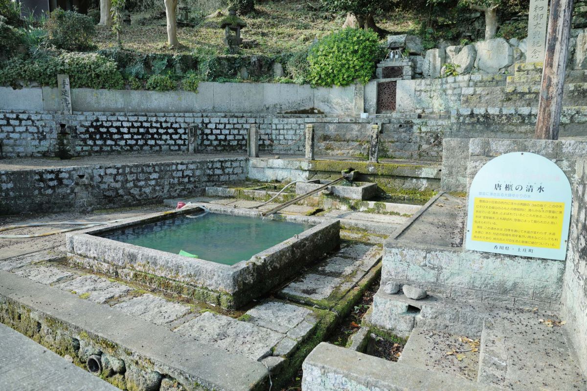 「島キッチン」の近くには、「唐櫃岡の清水共同用水路」があります。空海によって掘られたと伝えられている湧き水で、別名「霊泉越水」とも。一年中水温が変わらず、水道水源として、また周辺の田畑を潤す灌がい用水として利用されています。豊島の豊かな「食」を支える現役の遺跡です。