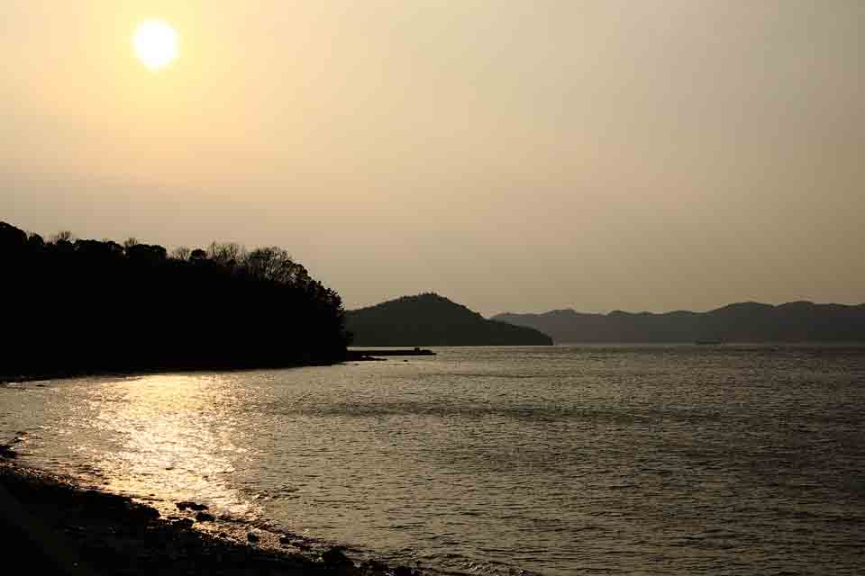 「心臓音のアーカイブ」の前は、瀬戸内の多島美を望む小さな浜。作品の鑑賞で頭を使った後は、こちらの浜で少しぼんやりするのがおすすめです。