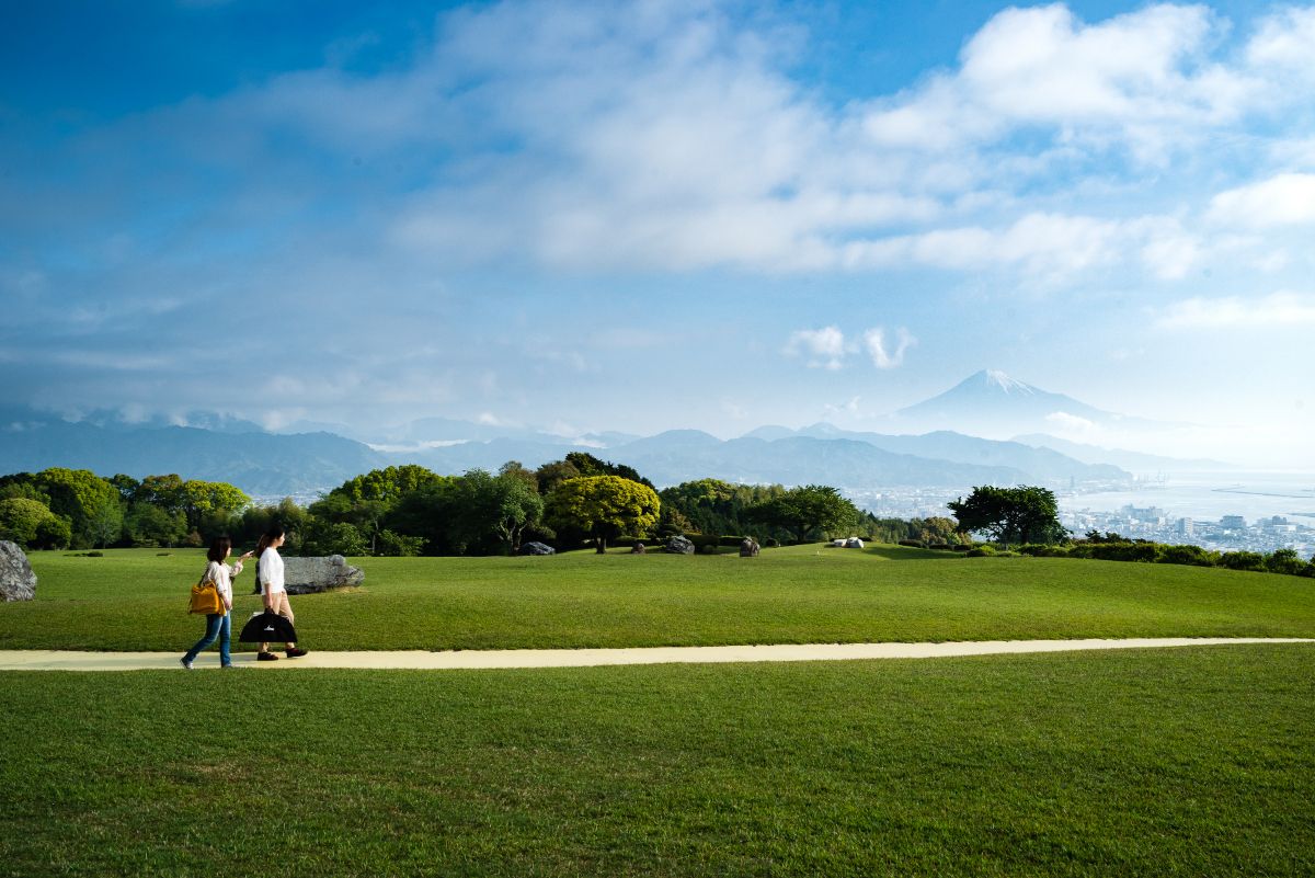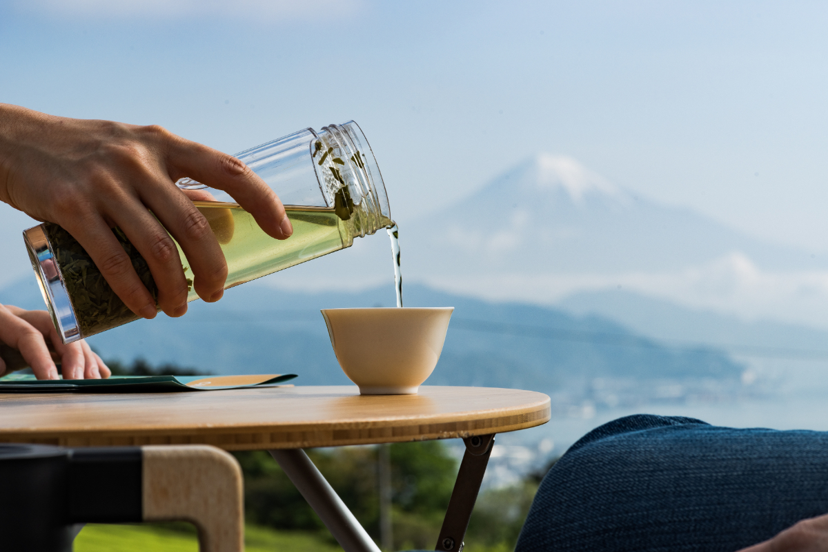 静岡県静岡市にある日本平は、富士山に駿河湾、伊豆半島までも望むビュースポットとして知られています。「全景の茶の間」は日本平の茶畑にあり、完全予約制・90分間貸切で楽しめるプライベートのティーテラス。アクセスの良さと、静岡らしい景色を堪能できることで人気です。