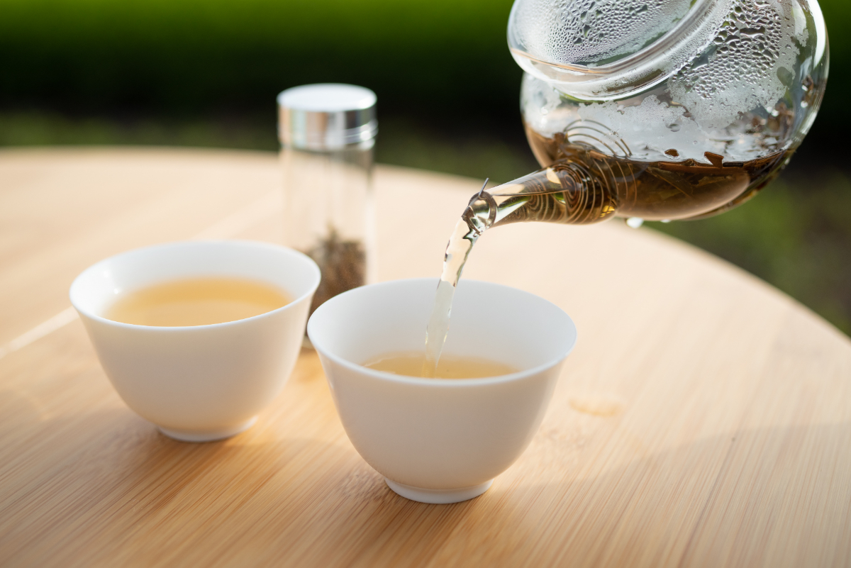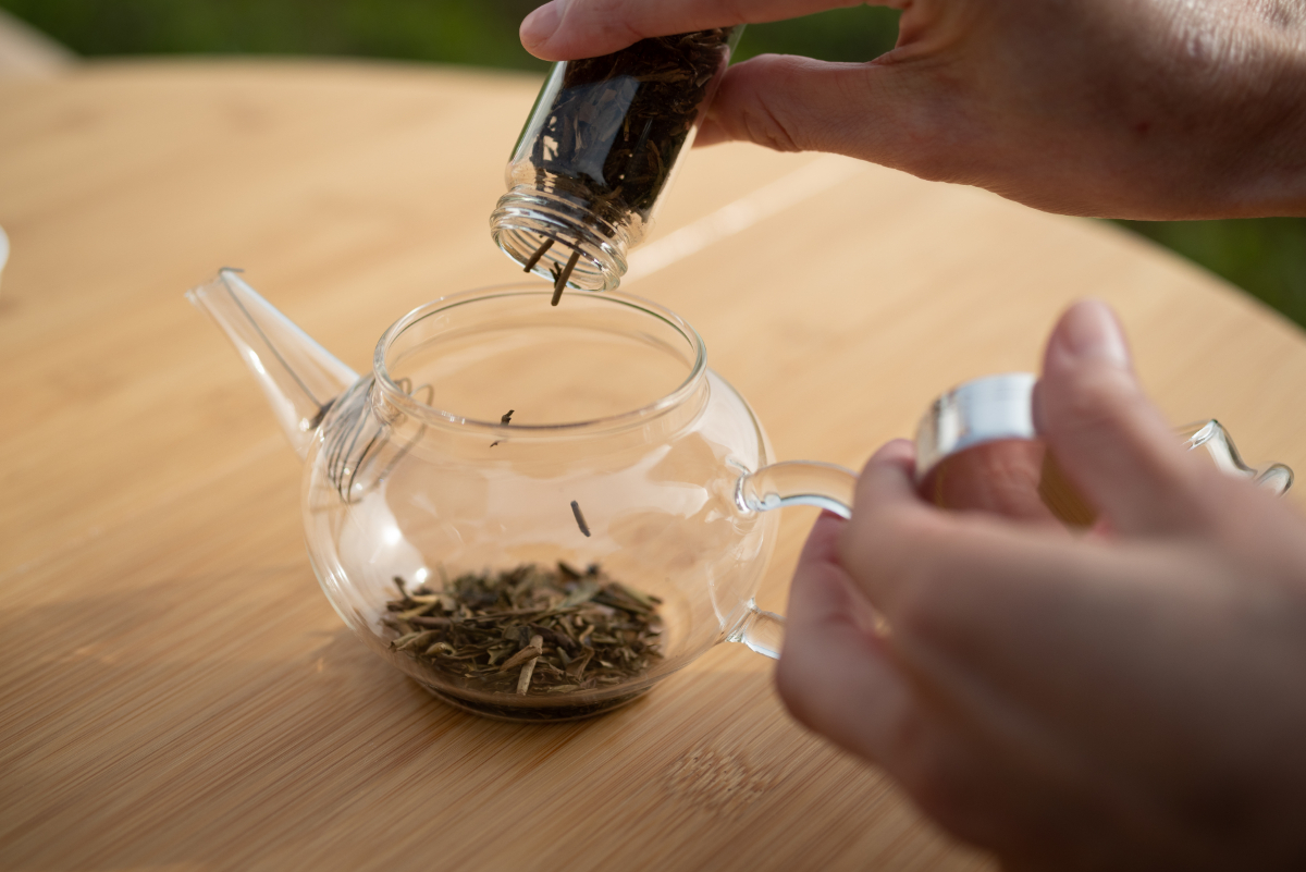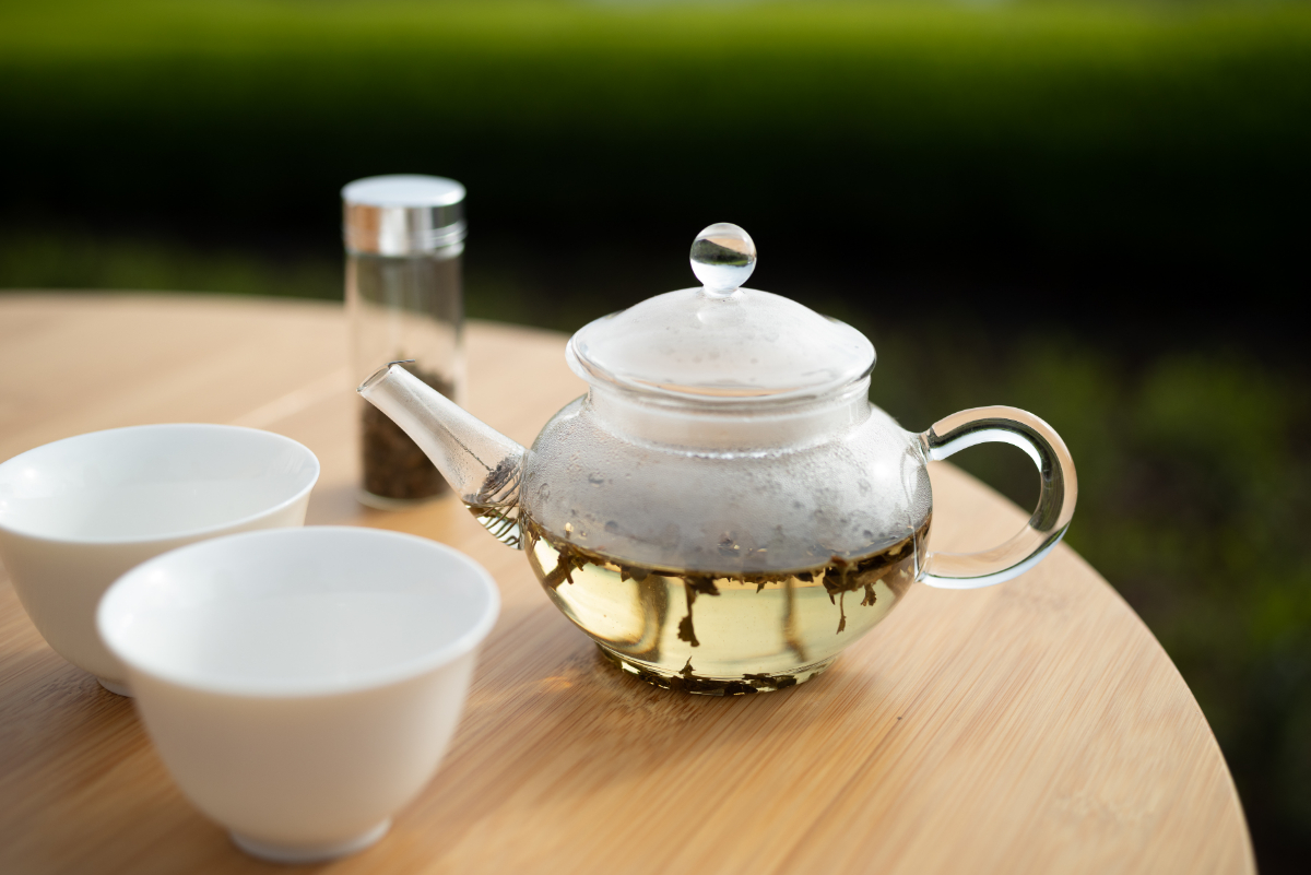 たっぷりのお湯が入ったポットから熱湯を注いで、1分ほど待ちます。ポットが透明なので、茶葉が少しずつ開いていく様子をのんびり見つつ、頃合いを見て湯呑みへ。