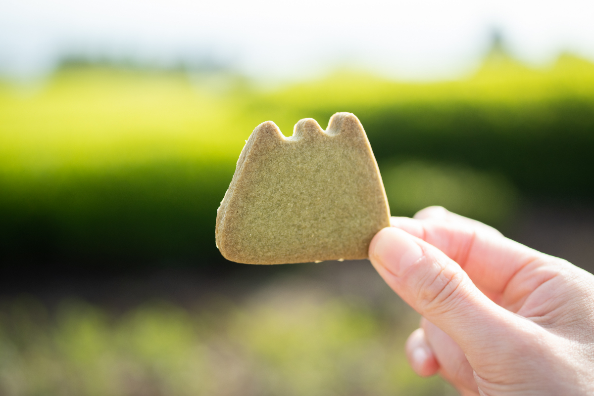 お茶セットの中に入っていたのは、日本平ホテル特製のお茶クッキー。富士山を模した硬めのクッキーは、割ってビックリ! 中まで鮮明なグリーンでした。
