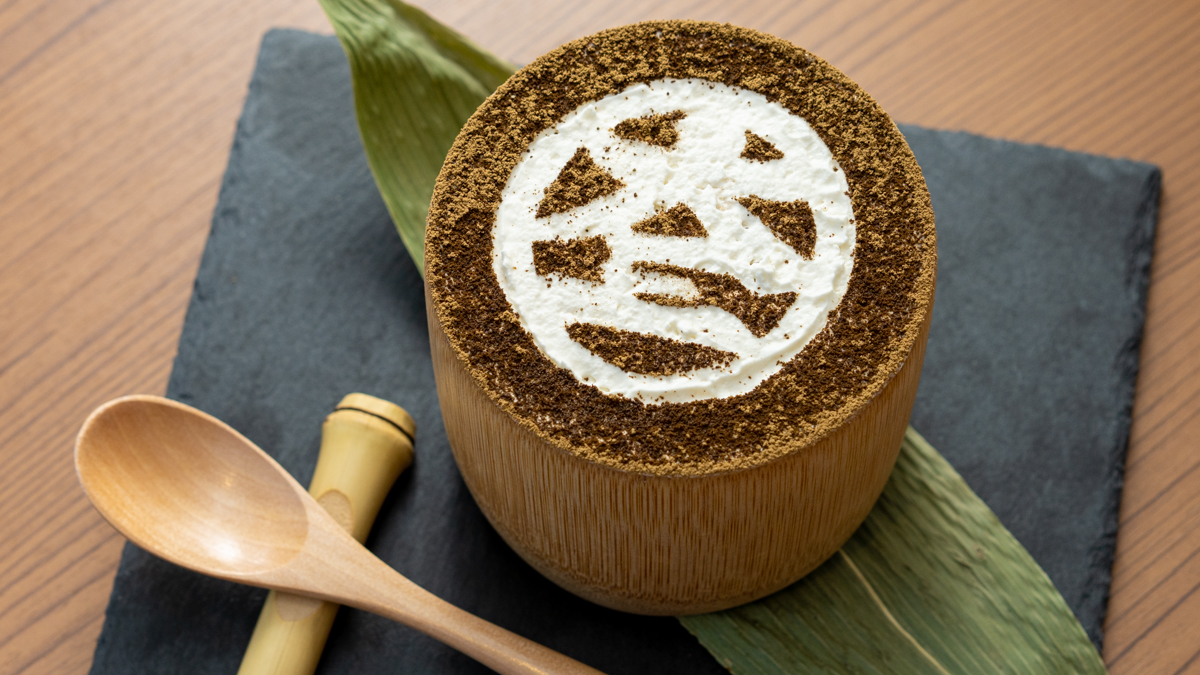 ほうじ茶パウダーと豆乳ホイップの下には、カステラ、ほうじ茶アイス、クルミ、自家製黒糖ゼリーなどがたっぷり隠れています。やさしい甘さを引き立てるわずかな苦味、芳醇な茶の香りも口いっぱいに広がります。