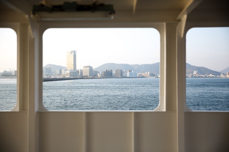 いよいよ高松港を出発!高速旅客船なら約30分、フェリーなら約50分の小さな船旅です。