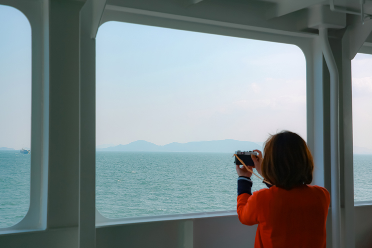 帰路もフェリーに乗って高松へ。上質なアート作品の数々に刺激され、また穏やかな島風景やヘルシーな郷土料理にも癒やされ、元気をたくさんもらった直島1dayトリップ。撮影OKの作品や、島のあちこちで見られる美しい景色を“たっぷり撮る旅”もおすすめですよ。