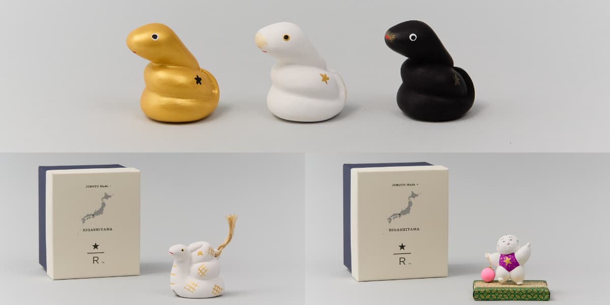 「スターバックス リザーブ® ロースタリー 東京」では、京都の二寧坂に工房を構える「島田耕園人形工房」とコラボレーション。「JIMOTO Made+(ジモト メイド プラス)」シリーズとして、干支や縁起物のアイテムを2024年12月13日(金)より限定販売します。御所人形や縁起物の招き猫に加え、2025年の干支「巳」をモチーフにしたアイテムの数々がラインナップ!販売期間など、気になる情報を詳しくご紹介します。