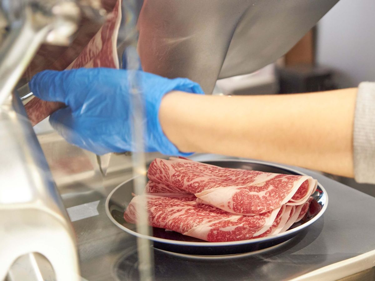 「松五郎」のお肉はオーダーが入ってから、1枚1枚スライサーでカットします。なので、常にベストの状態のお肉を楽しめるのです。