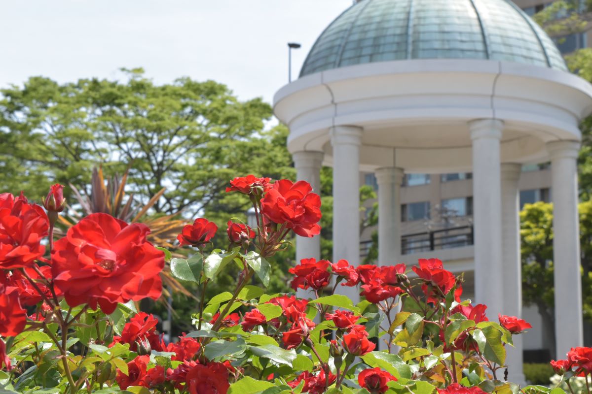 早咲きから遅咲きまで、白・赤・黄・ピンクなど色とりどりのバラが植えられており、春と秋に咲き誇ります。横須賀市ヴェルニー公園のバラは市民ボランティアの方々と公園が協力しながら管理しています。