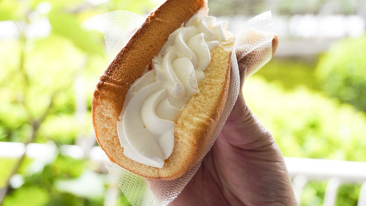 パッと見た感じは、白いホイップクリームが目立ちますが、底の方に隠し味のようにコクのある黄色いカスタードが潜んでいます。端っこからまるかじりするもよし、2つに割って頬張るもよし。カステラとクリームが口のなかで一体となり、とろけていくようです。