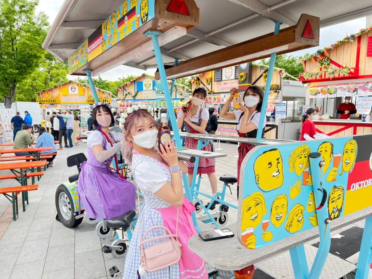 もうひとつの見どころがドイツから輸入したビアバイク!12人乗りの巨大なビアバイクがオクトーバーガールとともに会場内を走ります。ビールを飲みながらだれでも自由に乗ることができますよ♪