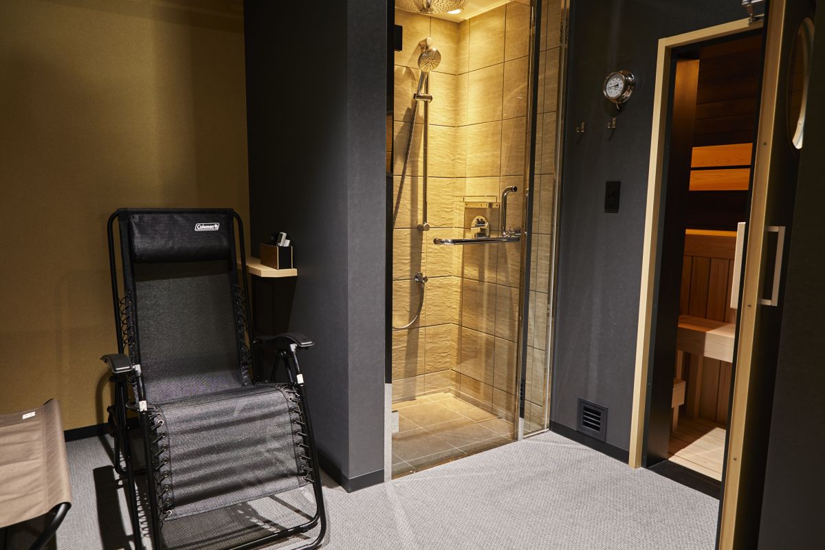 部屋の中央にあるのは、サウナ好きが“ととのい椅子”として太鼓判を押す「インフィニティチェア」。脚を伸ばしてくつろぐもよし、180度背もたれを倒して寝そべるもよしで、“ととのい”タイムにぴったり。理想の休息時間が過ごせます。