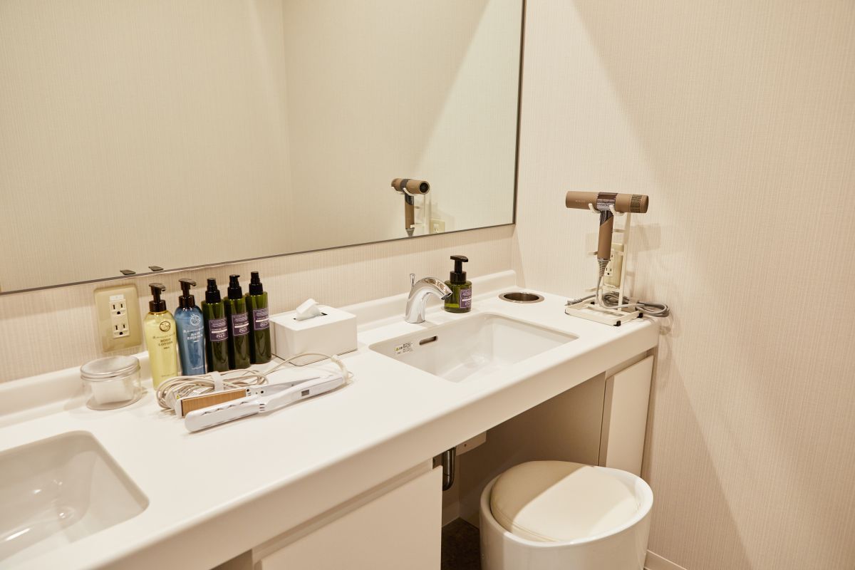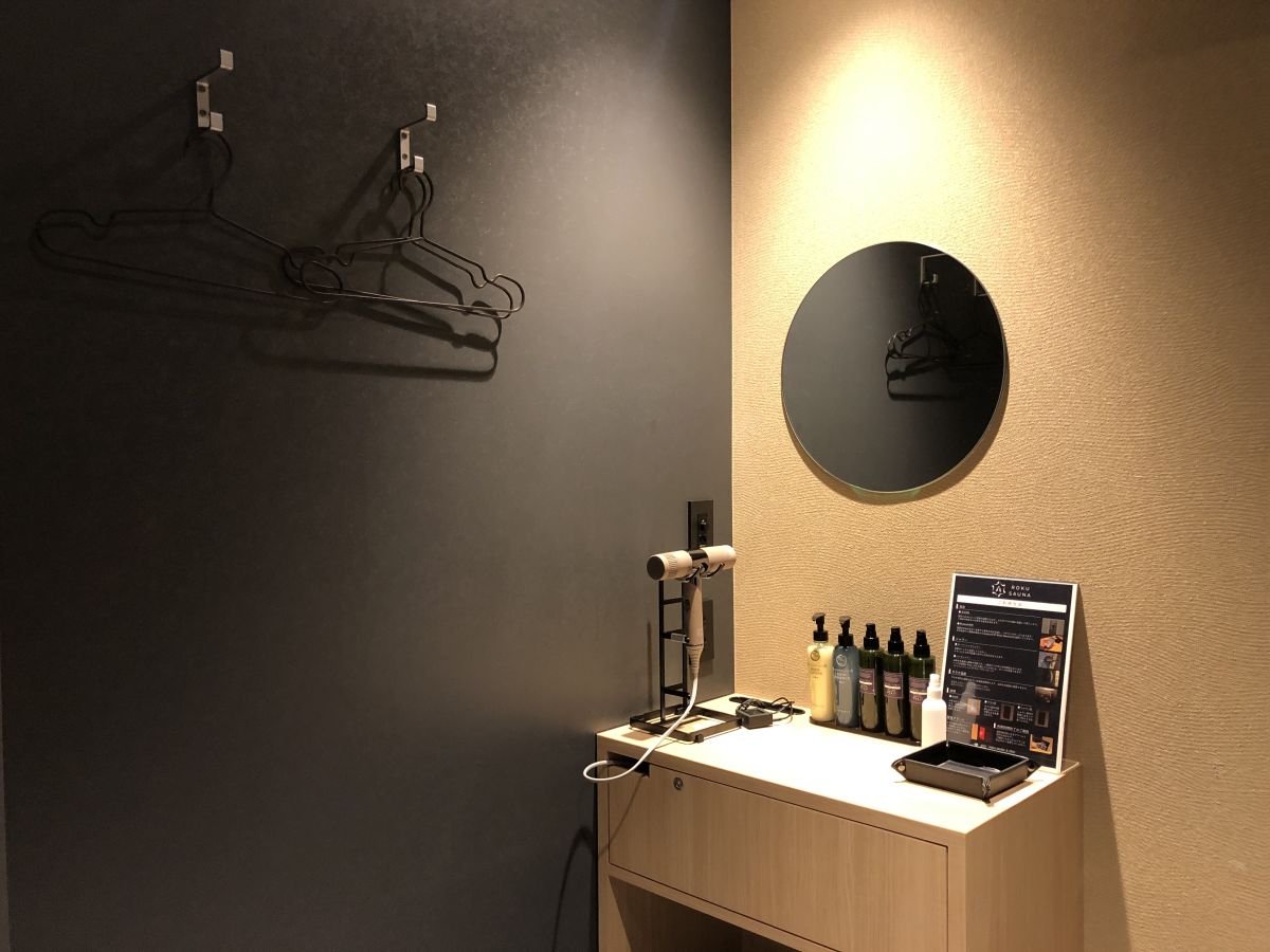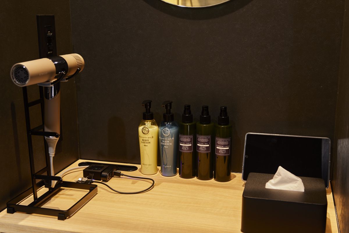 「髪を乾かす時間がない!」なんてときも大丈夫。時間外に使える女性専用パウダールームへ向かいましょう。個室内と同じ内容のスキンケアアイテムなどのほか、ヘアアイロンもあるのでサウナ後におでかけやデートも楽しめちゃいます。