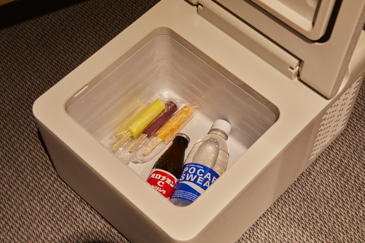 1人1本まで無料のドリンクは、常温とコールドが選べます。好きなものをチョイスしたら、自分の鍵番号の部屋へ向かいましょう。