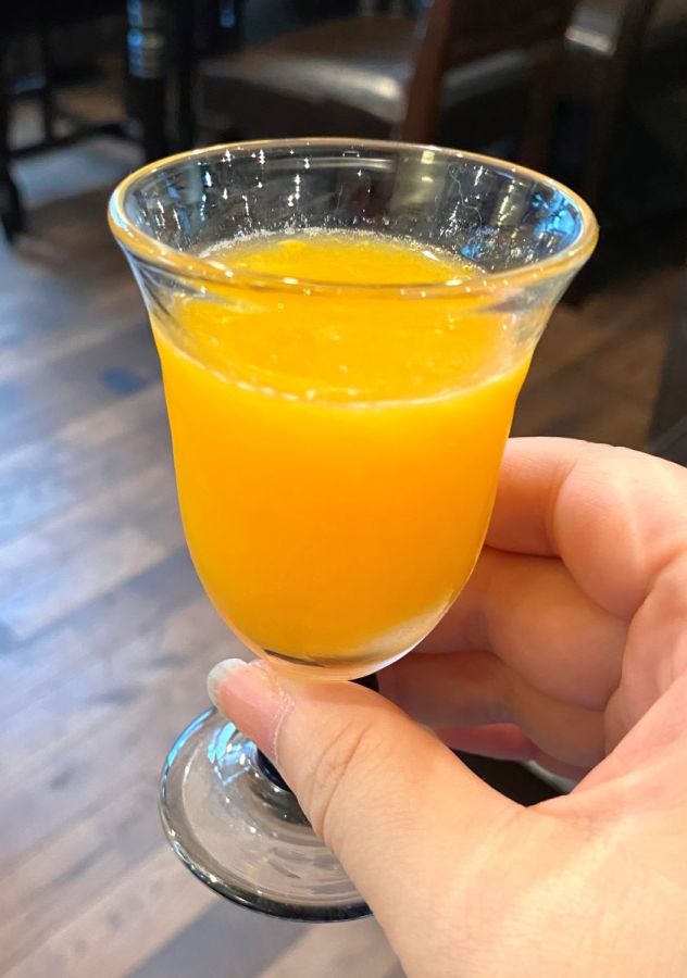 セットに付いているジュースは、季節のフルーツをコールドプレスジューサーにかけて作っているそうで、ビタミンCが壊れず栄養価もばっちり。この日は「ミネオラオレンジ」のジュース。しっかりと素材の味を感じます。
