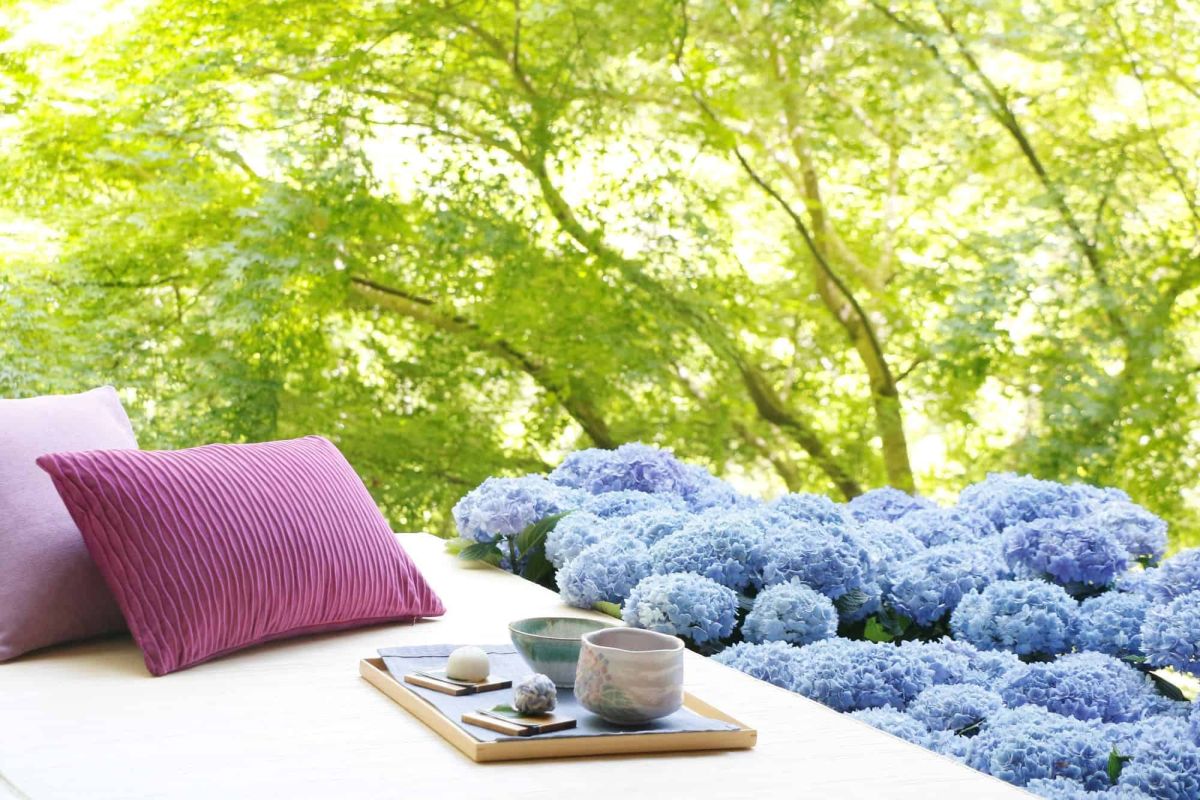 神奈川県・箱根湯本にたたずむ全室リバービューの星野リゾート「界 箱根」。2022年6月11日(土)〜30日(木)の期間限定で、梅雨の風物詩を楽しむ宿泊プラン「あじさい尽くし滞在」がスタート! 3回目の実施となる今年は「あじさい温泉」や「あじさい縁台」「あじさい茶室お点前体験」など、こだわりの演出が盛りだくさんです。