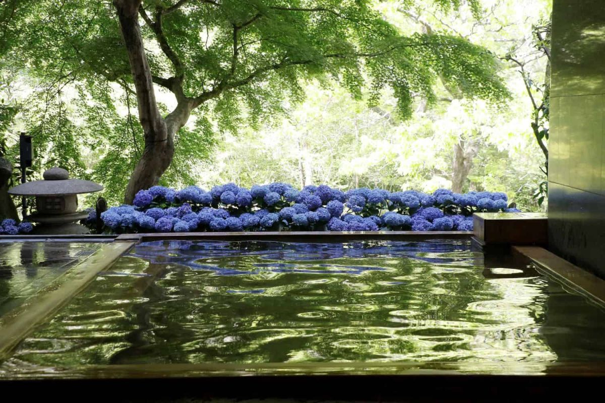 アジサイと新緑を温泉に浸かりながら独り占め!