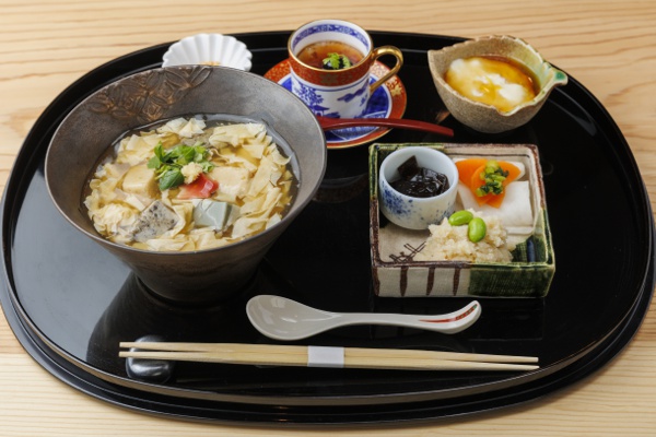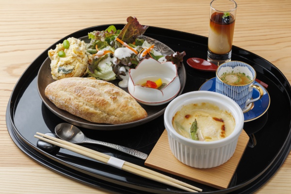 「Café ふふふあん」では、美と健康をテーマに、生麩や生湯葉などを使ったランチやスイーツを提供しています。
