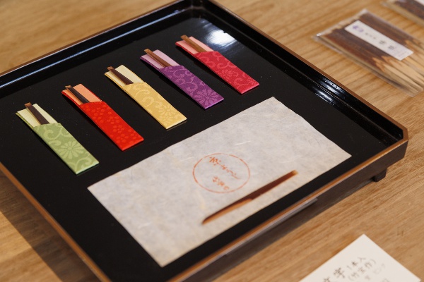 カフェの奥には物販のコーナーがあります。ここでは京都に限らず、スタッフがセレクトした日本の工芸品を販売。黒文字10本入り550円は「Café ふふふあん」で麩饅頭を提供する際に使われているものです。
