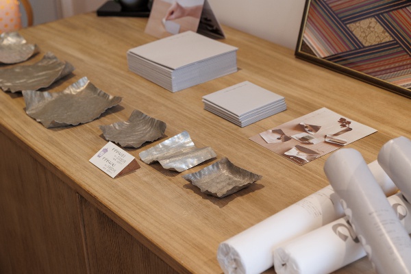のせるものに合わせて折り曲げたり、丸めたり、好みの形を作り上げられる、すずがみ2200円~は、お菓子をのせたり、アクセサリーなどの小物置きにぴったり。掃除や台所などマルチで使える和晒(わざらし)ロール1980円~もおすすめです。