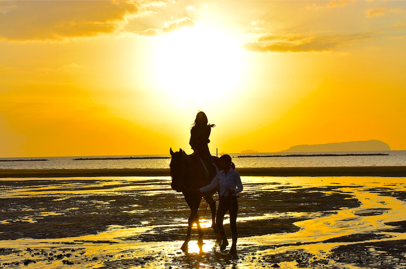 「日本の夕陽百選」にも選ばれた海沿いでの乗馬体験も!