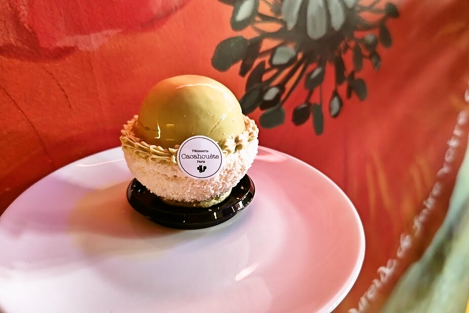 写真は「パブロバ ピスタッシュ」790円。ピスタチオのムースの中に、いちごとラズベリーのソースが入っていて、ほんのりココナッツの風味も感じます。