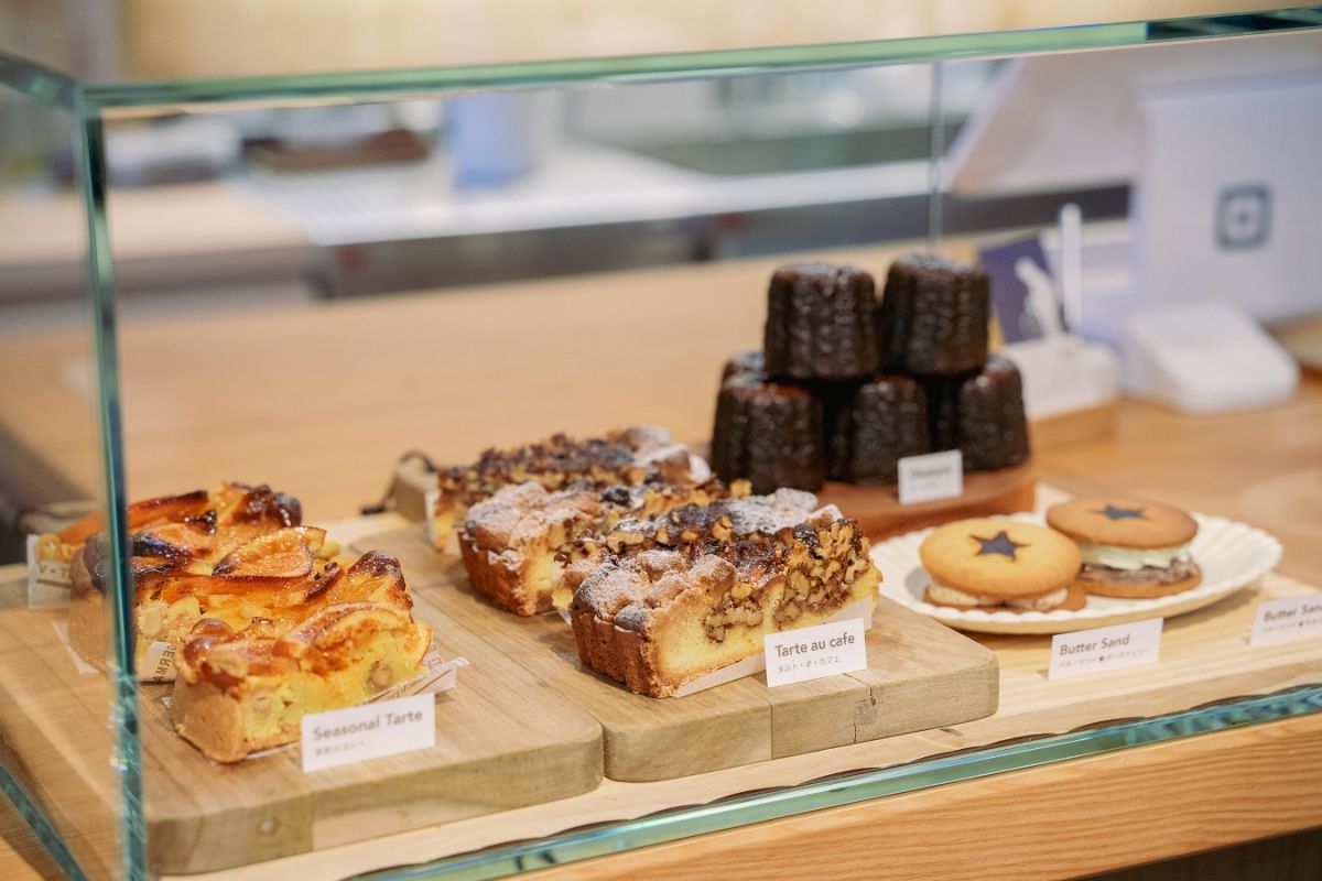 焼き菓子は、系列のスイーツ店「amagami kyoto(アマガミ キョウト)」で仕上げたもの。バターサンドやカヌレ、タルトなどどれもコーヒーとの相性を考えて作られています。