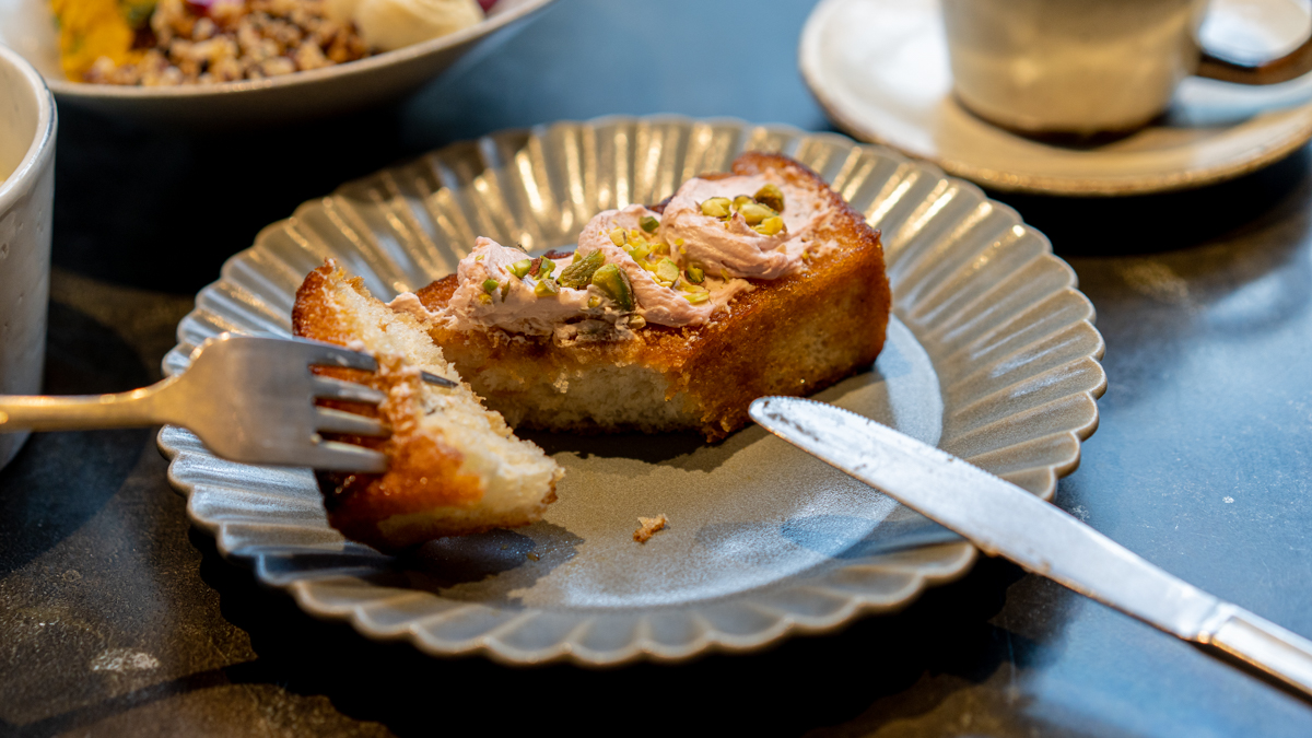 各種パンのクオリティも高いです。たとえば「苺とピスタチオのハニートースト」は、甘酸っぱいストロベリークリーム、蜂蜜の染みたトースト、芳ばしいピスタチオが絶妙なハーモニーを奏でていました。