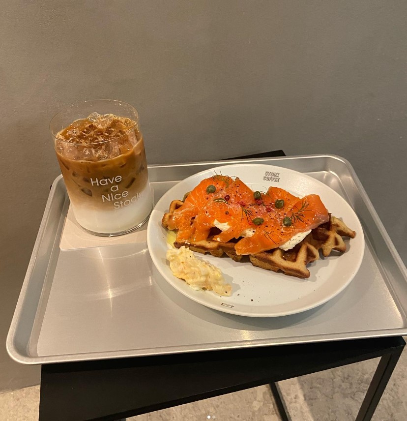 スイートな味のワッフルに、ディル、ケーパー、ピンクペッパーをトッピングしており、甘いとしょっぱいの病みつきな組み合わせがたまりません。