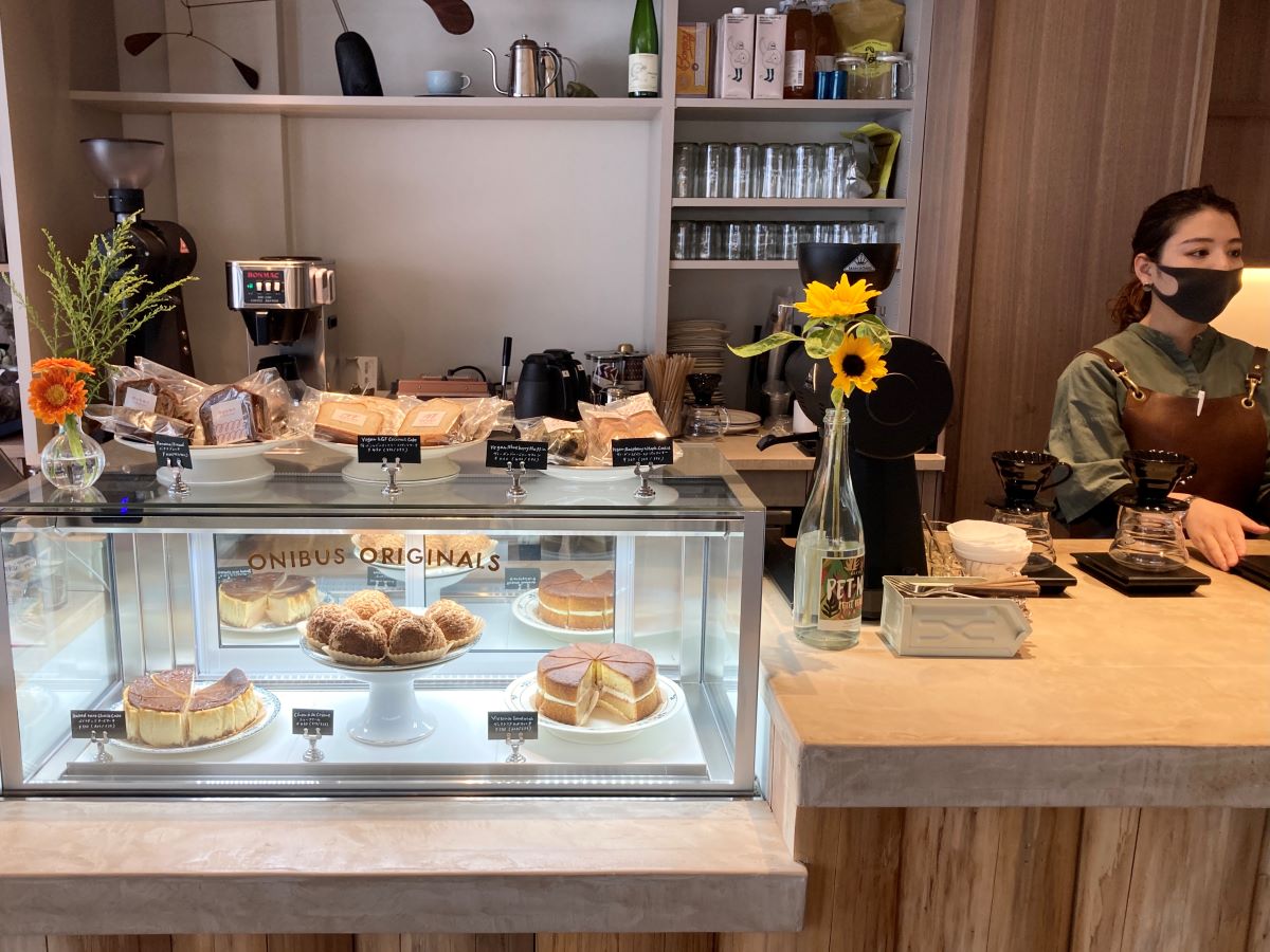 「ONIBUS COFFEE 自由が丘店」は店舗内にペイストリー工房があり、デザートメニューも充実しています。また自由が丘店オープンより、ヘッドペイストリーシェフ・スイーツディレクターとしてフランスで腕を磨き、都内レストランでシェフパティシエを務めた山中浩平さんが参入。これまで「ONIBUS COFFEE」各店で販売していた焼き菓子だけでなく、自由が丘店限定の生菓子も提供しています。