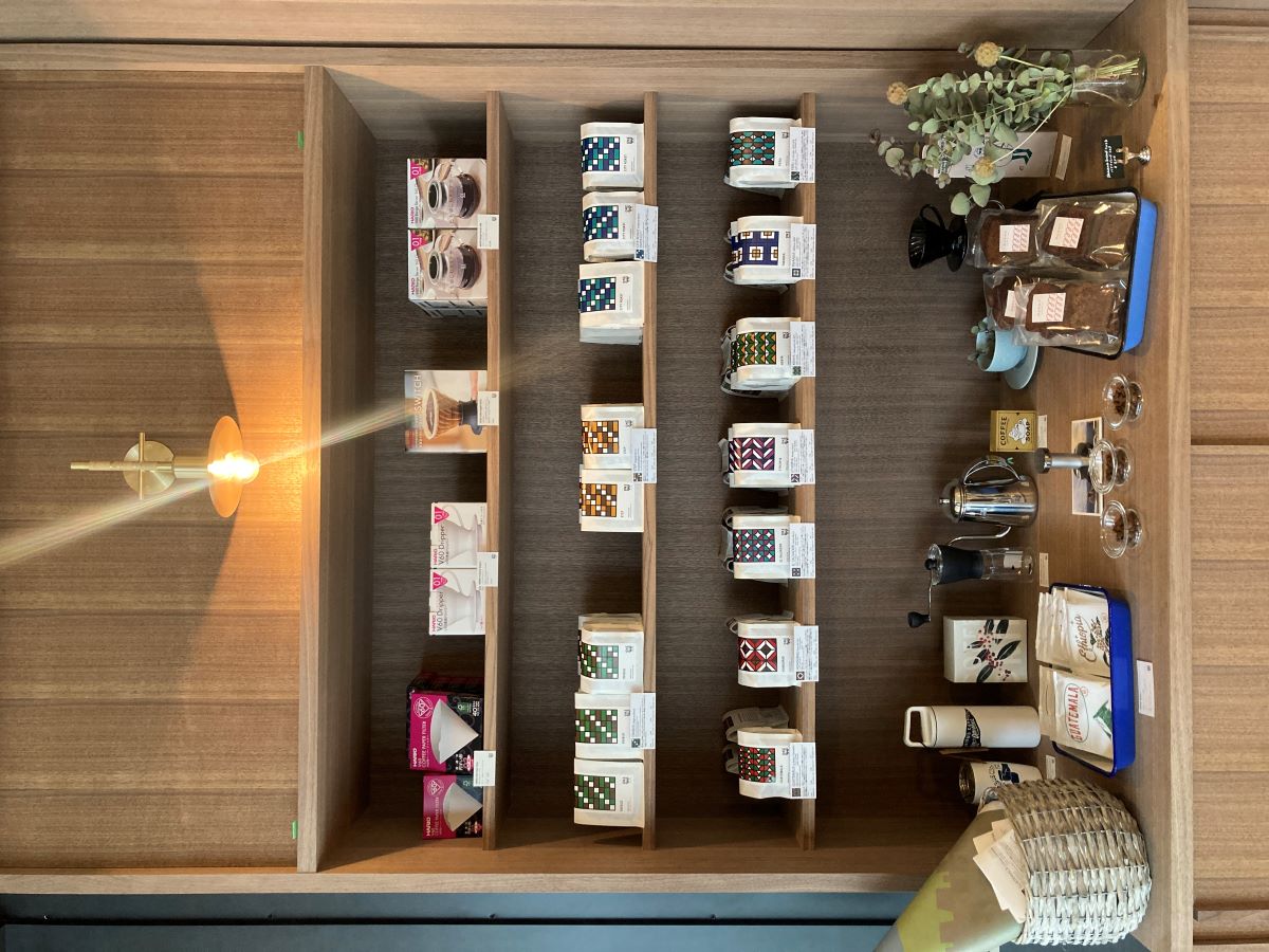 店内ではコーヒー豆の販売も。パッケージもかわいらしく、おみやげにしても喜ばれそうです!